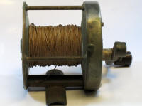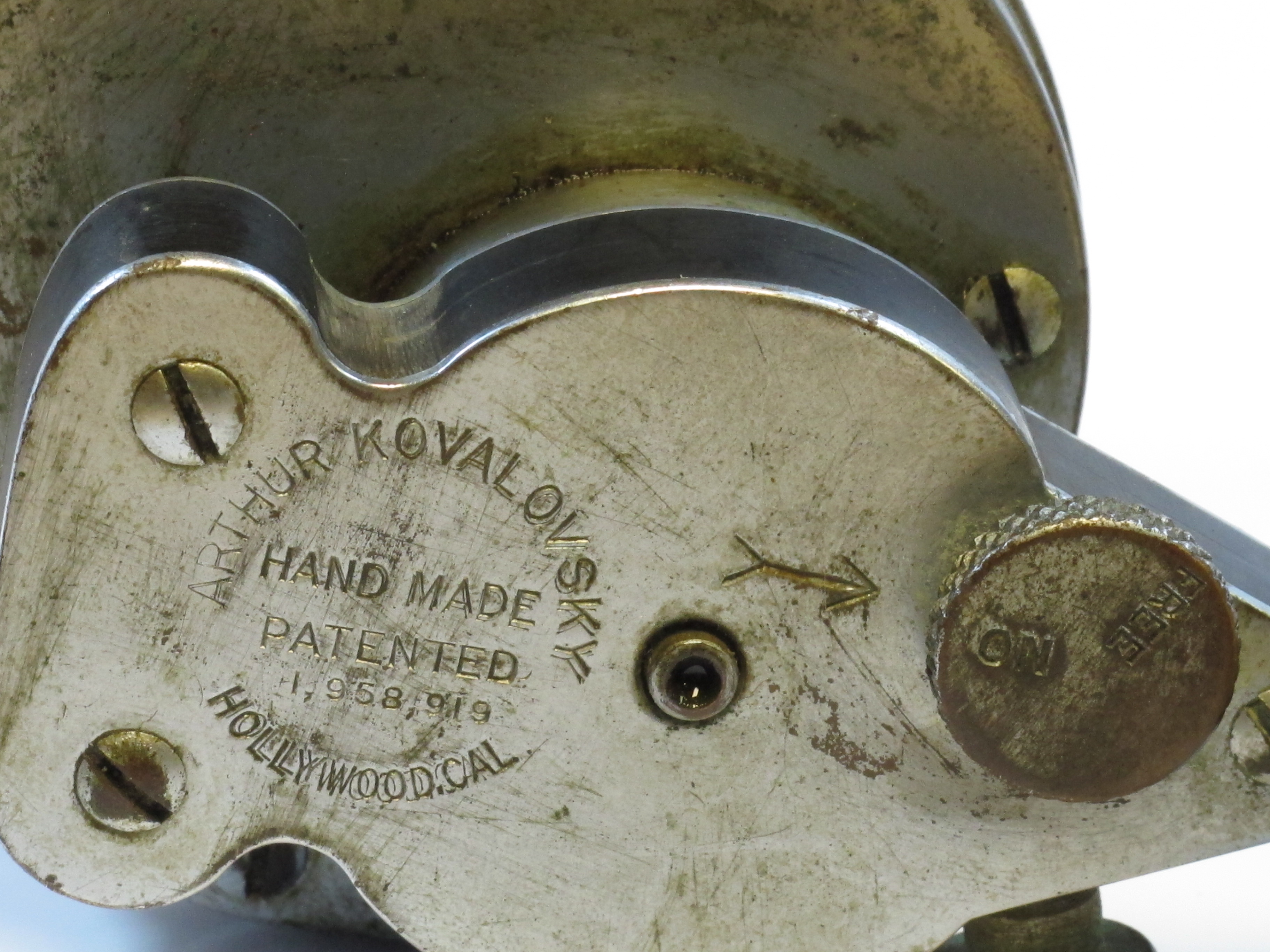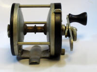 A. Kovalovsky, size 3-0, Pat. 1958919, 'Banjo' handle, side plate diameter 3 1/4", spool width 2-0"SOLD |
