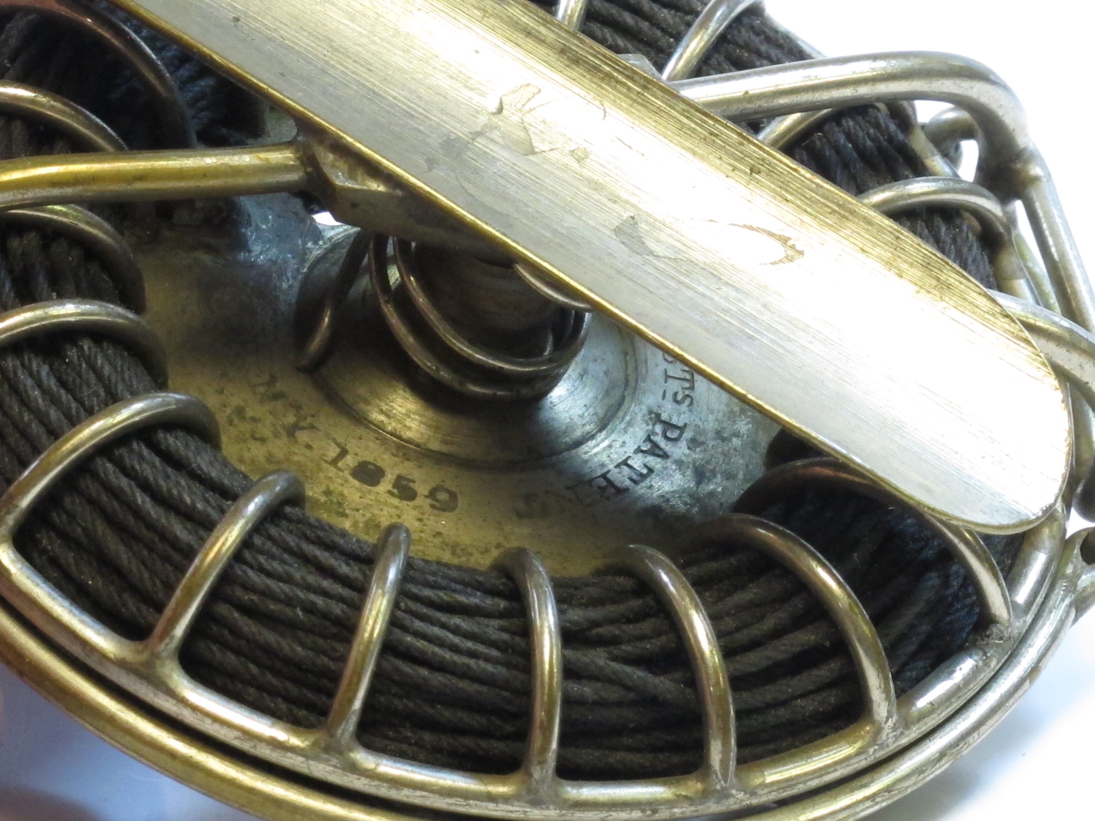 Billinghurst, Rochester, NY, fixed handle, double patent dates: Pat. 1859/ Aug. 9, 1873, diameter 3" side-mount brass reelSOLD |
