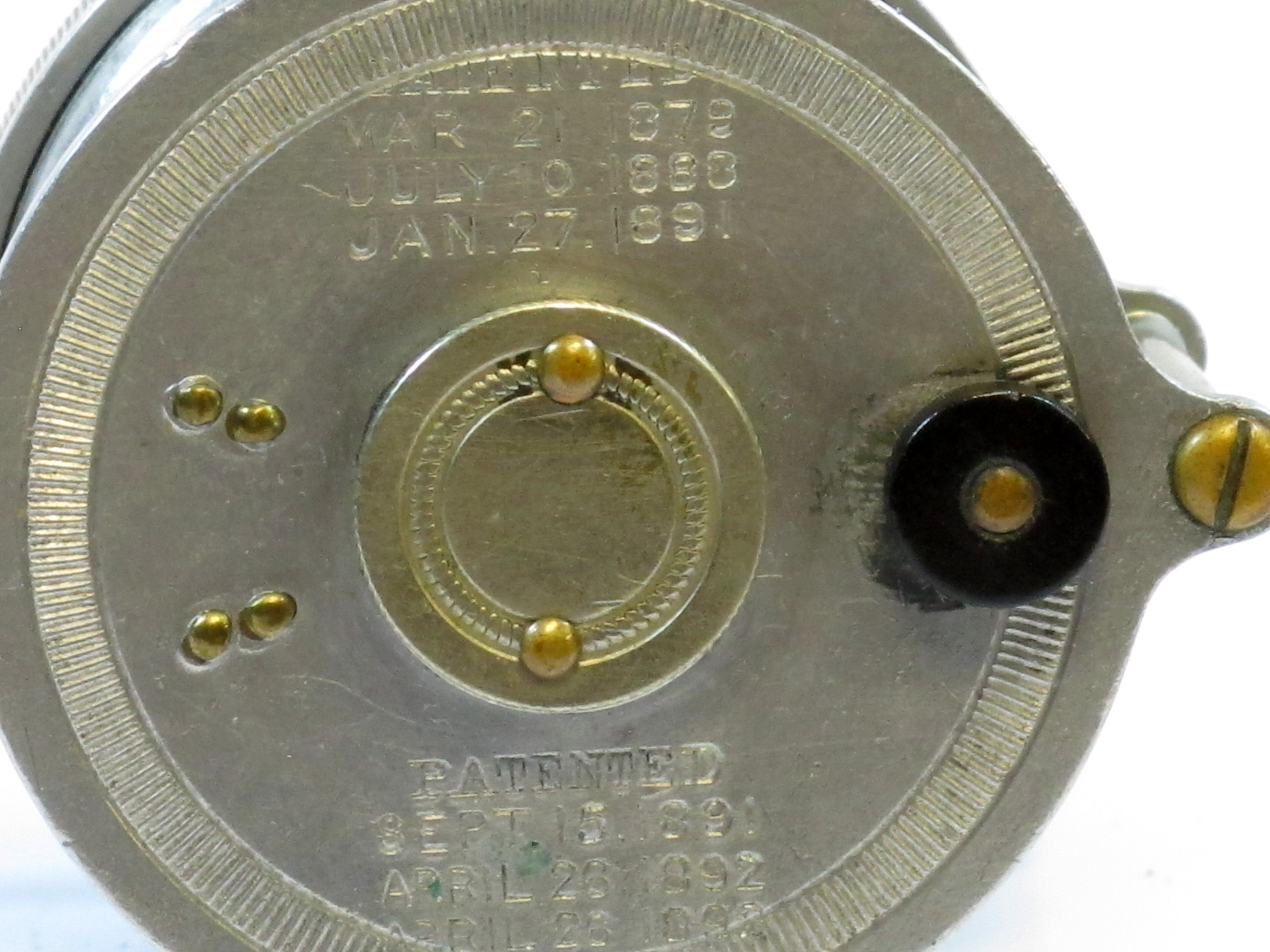Blue Brass, Reel Works, Louisville, Ky., No. 3, triple handle, tournament reel, sn. 8042, marked 'Mary B. Kellogg' (Who was Mary B. Kellogg?)$1,150 |