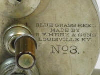 B. F. Meek & Sons, Blue Grass Reel, triple handle, No. 3, sn. 3118, wood arbor spacer$600 |