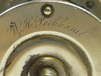 J. F. & B. F. Meek, Frankfort, Ky., size 4 or 5, but no stamped number, wide spool, early numbered screws, 12 O'Clock half handle. Number 16 on the foot.$28,000 |