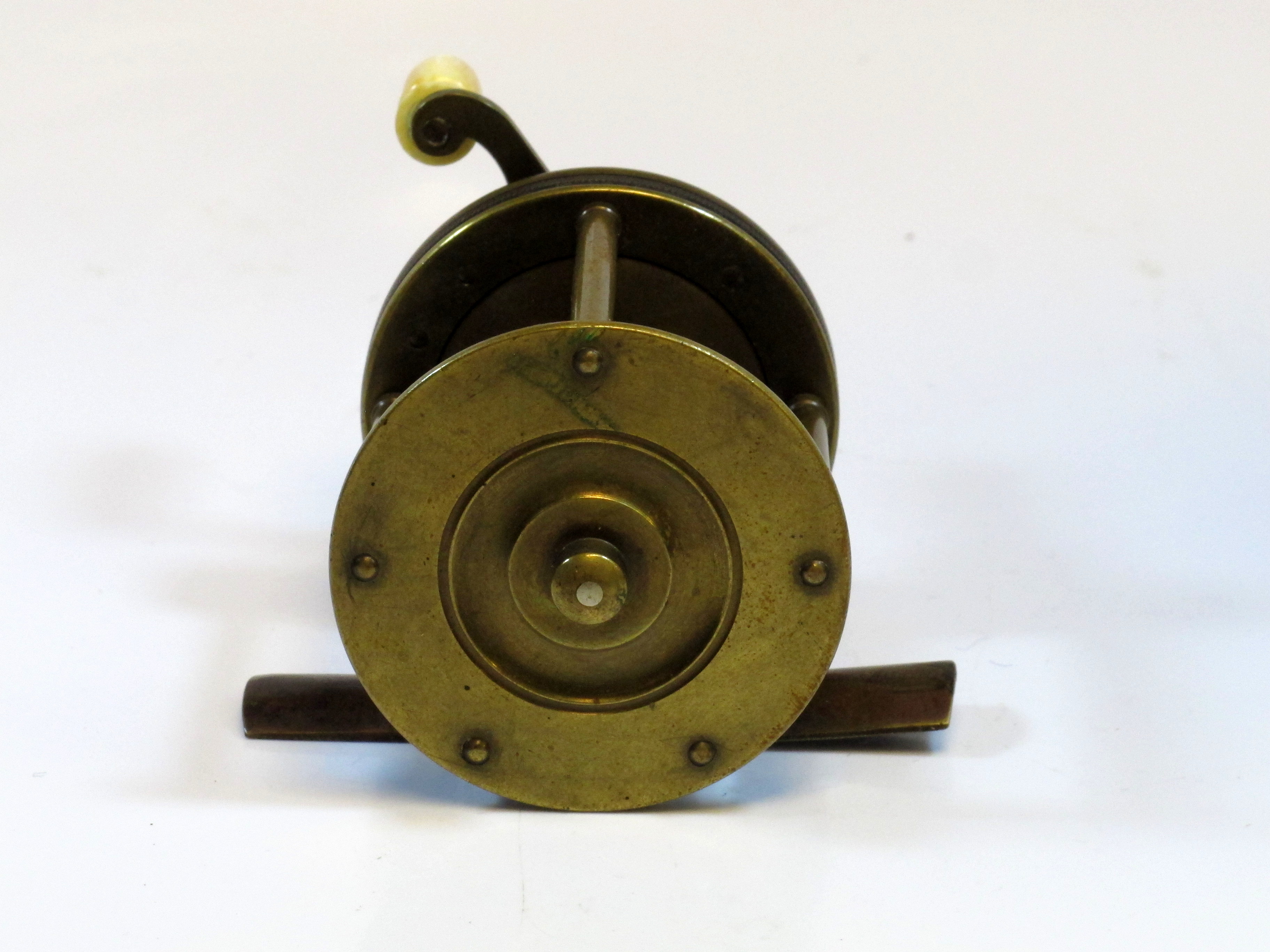 H. L. Leonard, N.Y., Pat. 1877, raised pillar, bimetal fly reel, 2 1/2 in. diameter$1,100 |