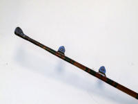 Edward vom Hofe, Model 742, 14-0 Big Game cradle reel, side plate diameter 7 � ", spool diameter 5 �" ,Side plates hard rubber and German silver cross bars of the reel frame was newly developed to allow unusual strength and lightness, very similar to Monel. The rod on this reel is all roller-guide Tycoon Fin Nor, 130 pound class, rod tip and rod butt separate from the reel seat on both ends of the reel and are in excellent shapeSOLD |