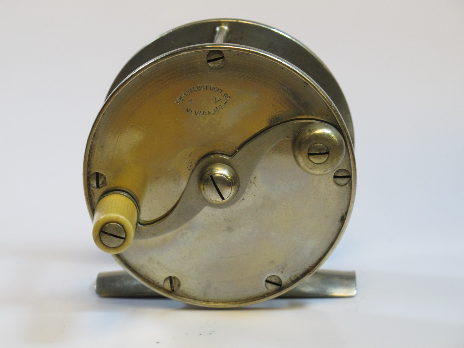Wm. H. Talbot Reel Co., Nevada, Mo., GS & Alum. 'Ben Hur' Fly Reel, size 101, dia. 2 1/2", 1" wide spool. S curved handle, Pat. 1901, scarceSOLD |