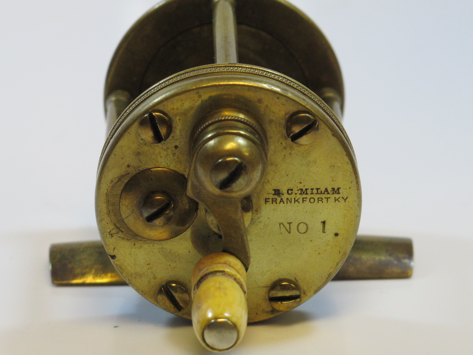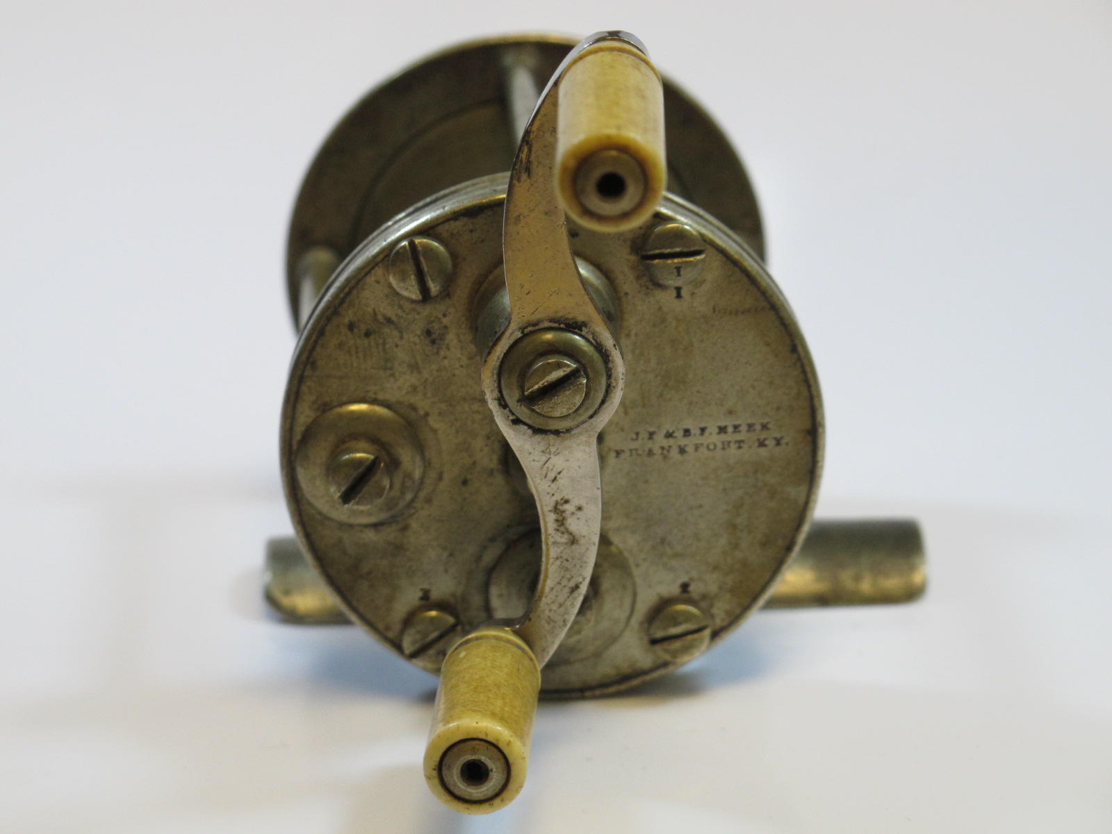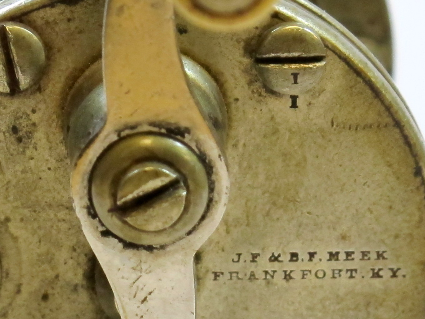 J. F. & B. F. Meek, Frankfort, Ky., size '0' (zero), wide spool, long foot, 1830-40 time frame, 1 o'clock handle, ultra rare size$46,000 |