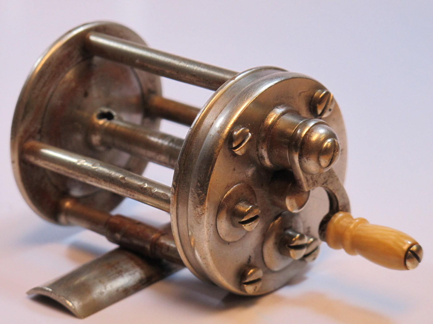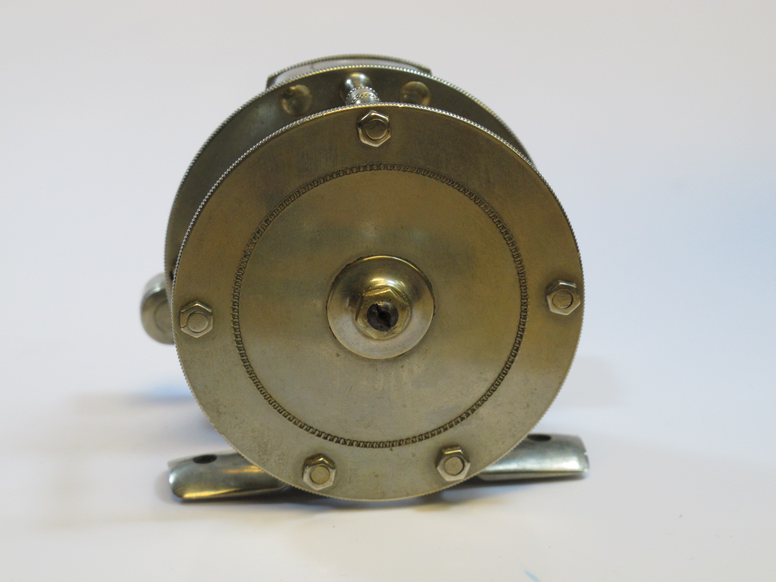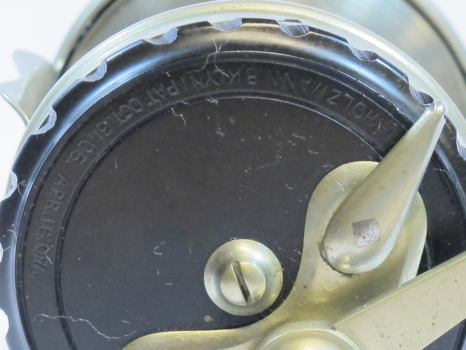 E. Holtzmann, N.Y., Pat. April 16, 1907, rare trout size, ultra light, Knurled face plate, free spool shift leverSOLD |