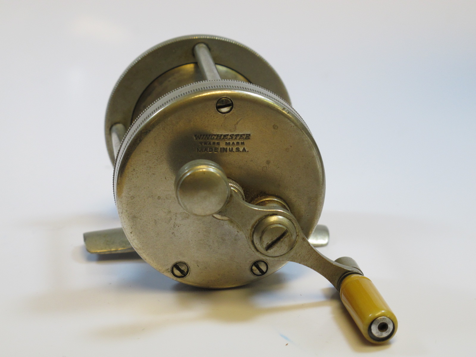 Winchester, sn. 4161, with rare counter balance on handle, the 'Holy Grail' of Winchester casting reels, very rare feature$550 |