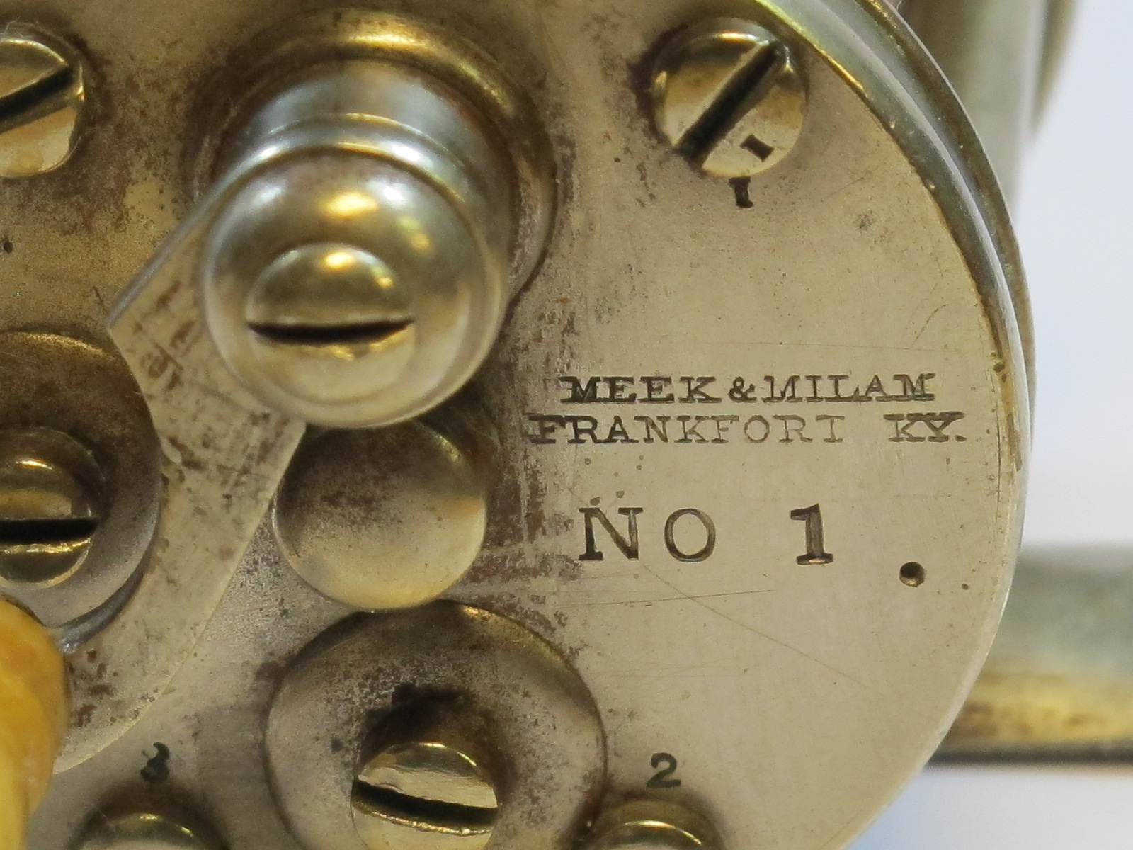 Meek & Milam, Frankfort, Ky., No. 1, numbered screws, two dots on foot, GS$4,600 |