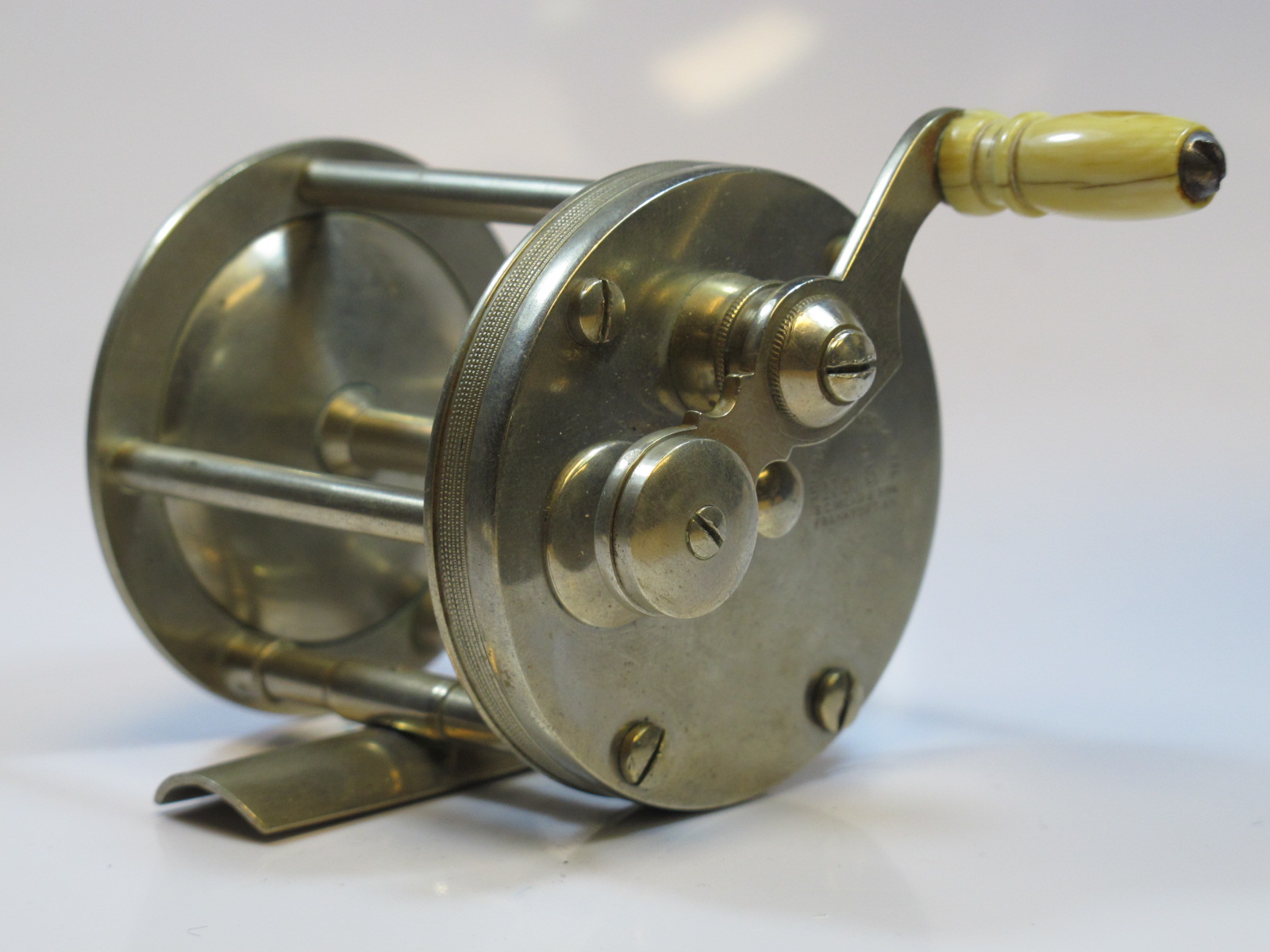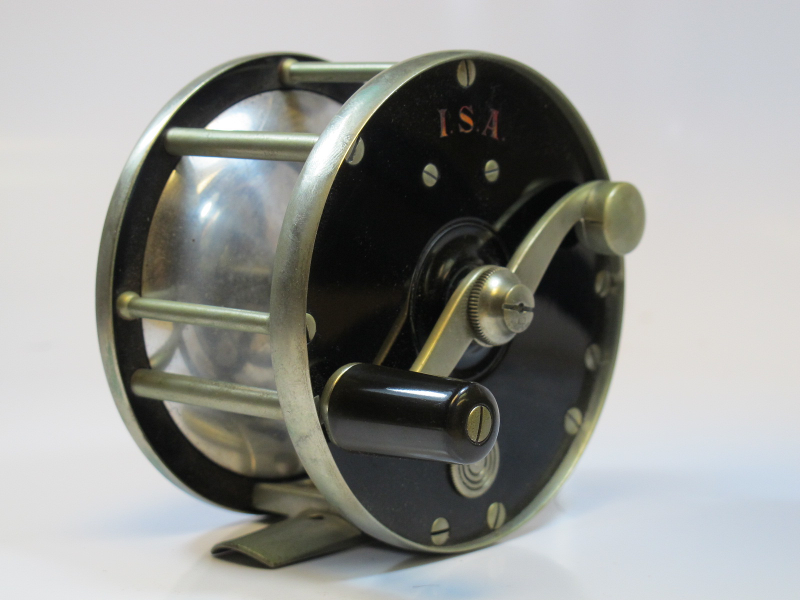 Edw. vom Hofe, 423, 'Restigouche', 4-0, Pat. '83, lever style detent drag feature with seven red dot indicators on back plate, marked 'ISA' on front side plate$2.250 |