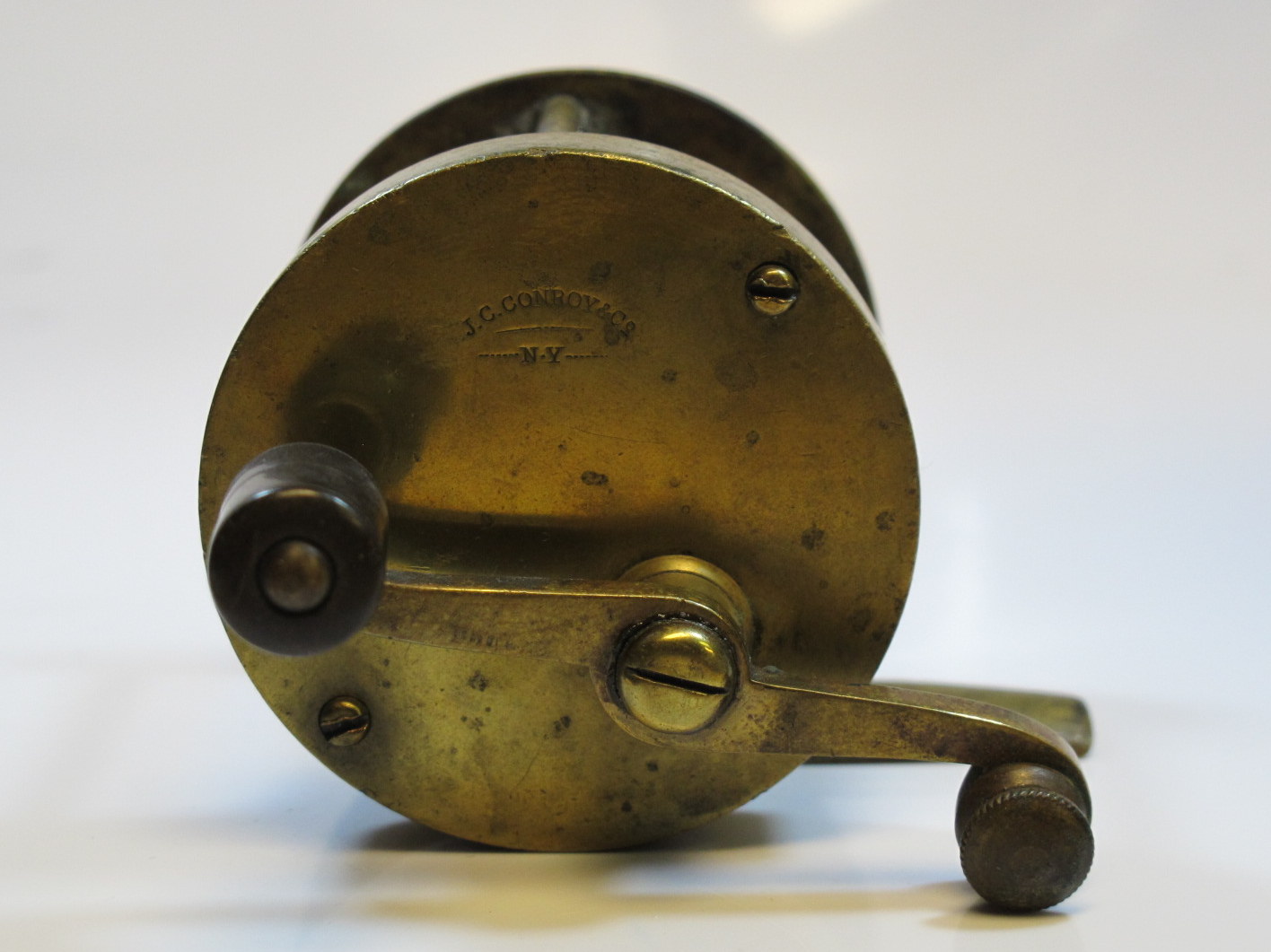 J. C. Conroy & Co., N.Y. ball handle style reel, 200 yd size, no numbers, c. 1864, brass$300 |